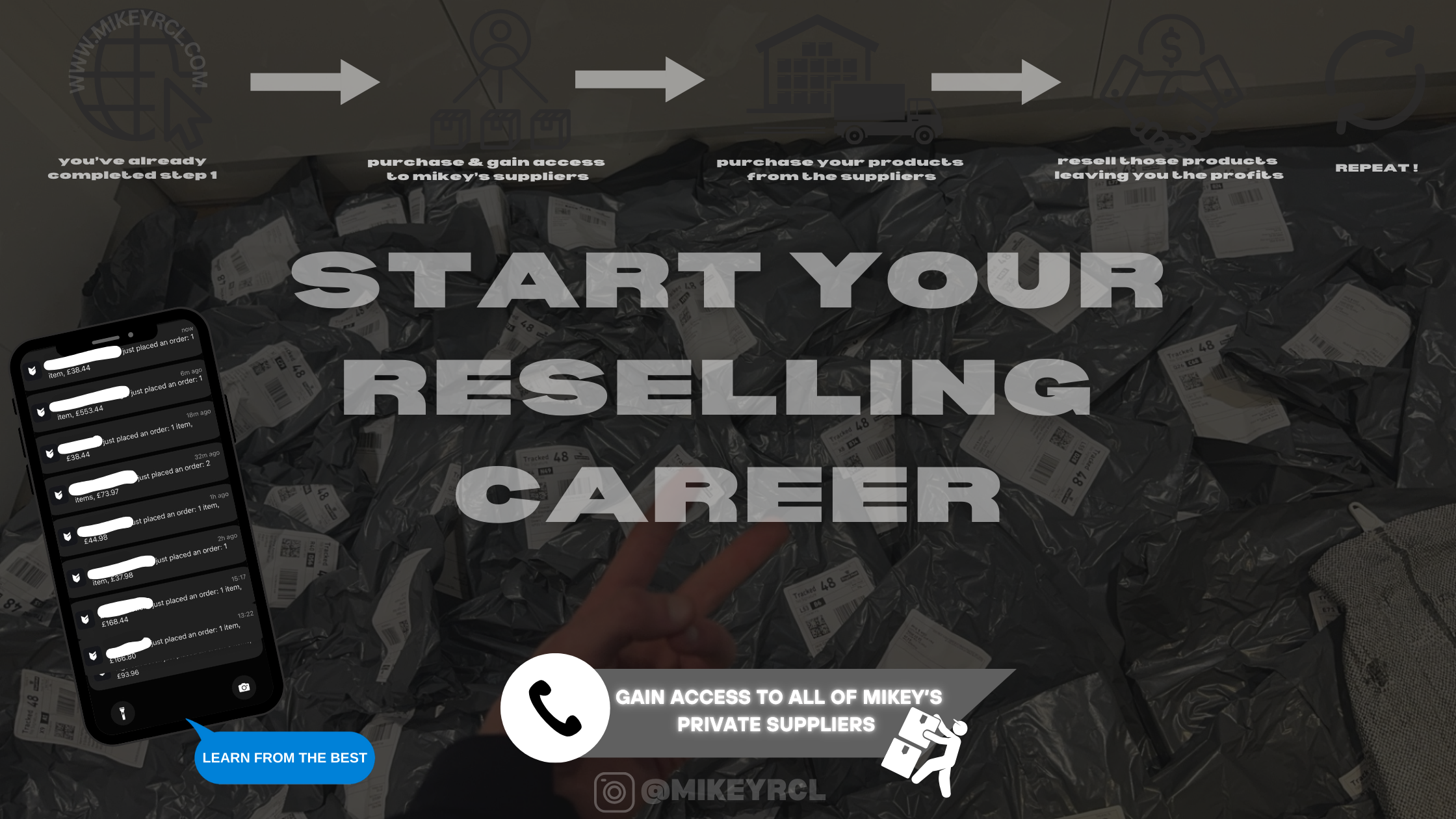 By joining my reselling community you will receive automatic access to all my suppliers - Resources, access to my help and opportunities to network with other likeminded individuals and other resellers, & more ... Price to join my private community doubles every 100 members... So if I was you I'd get in know whilst its cheap AF...